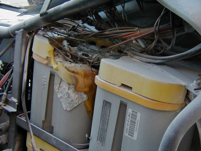 The firemen showed up and helped me disassemble the faring, where we finally saw exactly what kind of damage there was. The first thing they did was locate the main power fuse and disconnect it. The fire had been pretty well restricted to one battery, which had not done a complete meltdown, so I didn’t have acid spattering the area. Still, the electronics under the dash were toast, as was my faring, and much of the main power circuit. Pretty bad. They told me about the HAZMAT pickup, once a month at the Eastside City Hall, and how to keep the batteries until then (get a 5-gallon container, put the battery in, and keep it covered).