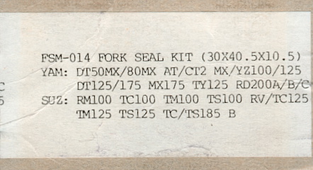 Robbie gave me a scrap of cardboard with a complete list of all of the bike makes and models whose front fork seals match mine. This will help immensely the next time I need to replace them. The parts are: